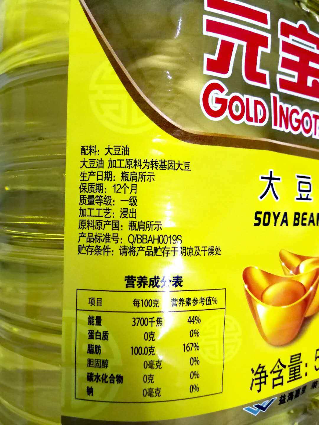 Yuanbao brand soybean oil 5 liters × 4 barrels of whole box catering restaurant hotel canteen special edible oil soybean oil