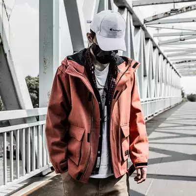 National tide multi-pocket tooling jacket men loose bf European and American hip-hop Tide brand youth assault clothing female hooded coat tide