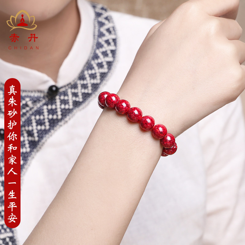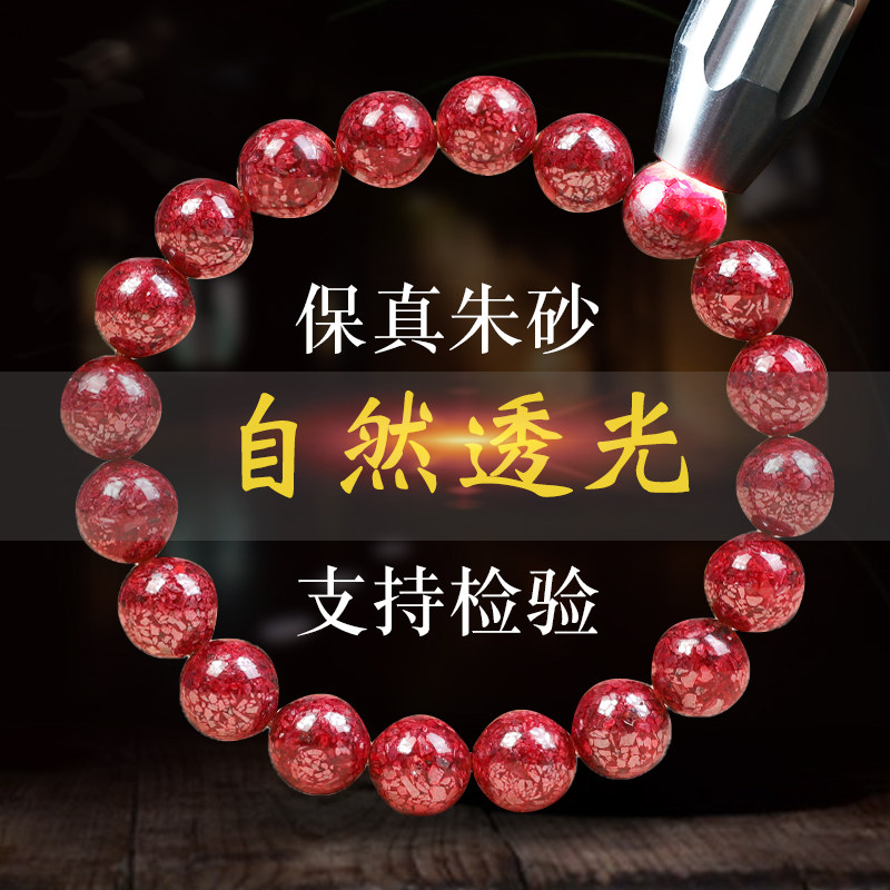 Cinnabar bracelet original ore high purity fully translucent crystal natal ox year lucky men and women round bead bracelet