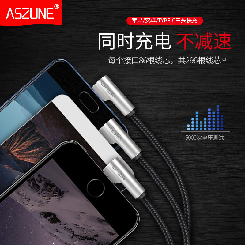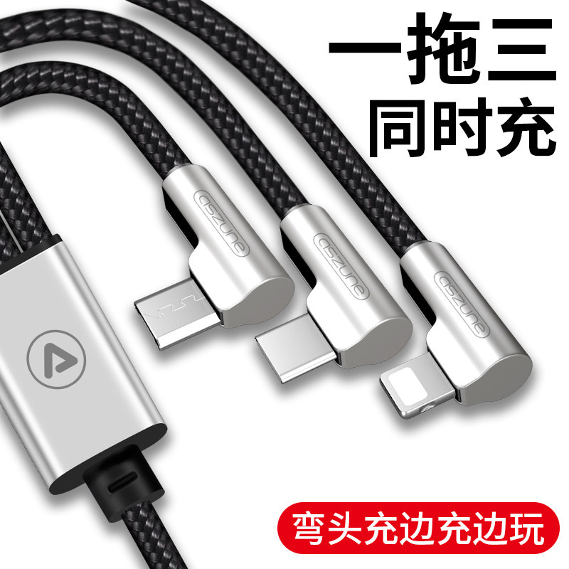 Apple data cable two-in-one drag Android phone three-in-one multi-function charging multi-head one drag three elbows