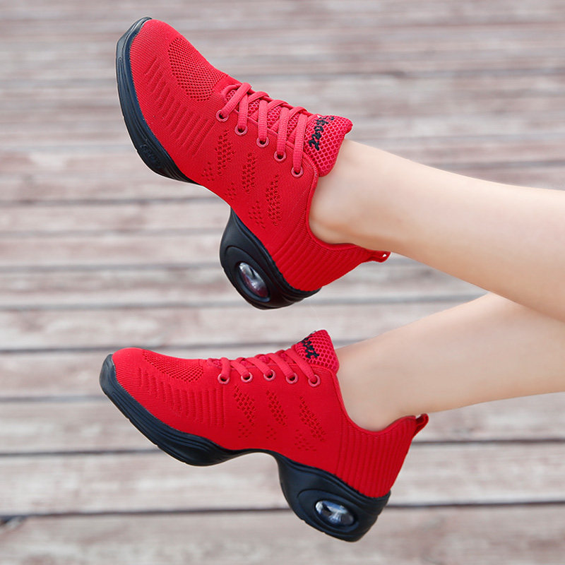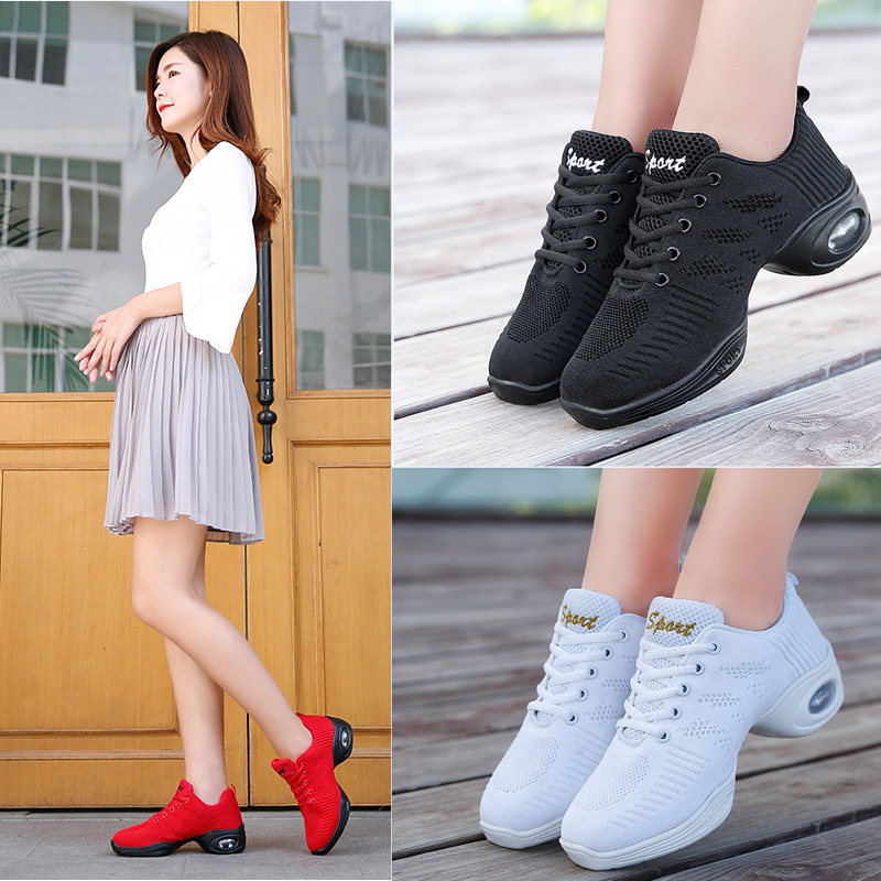 New Square Dance Shoes Adults Soft Bottom Water Soldiers Jazz Dancing Women Shoes 3D Flying Textured Net Face Breathable Ghost Walking Shoes