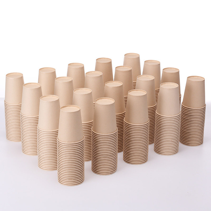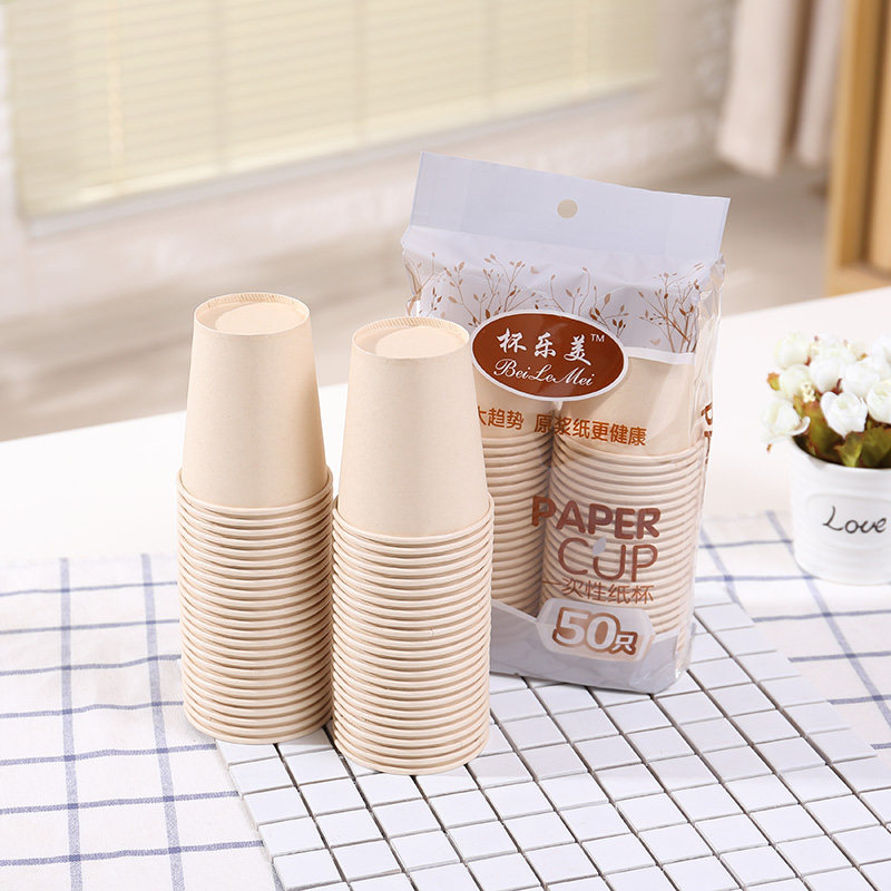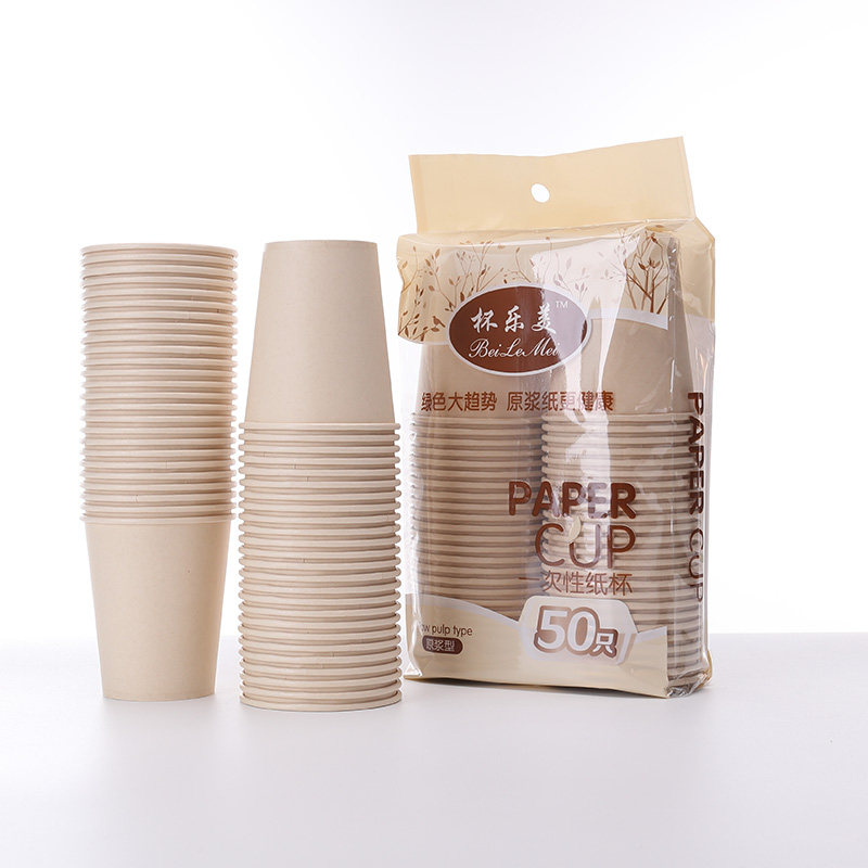 Thickened natural color paper cup whole box bamboo fiber original pulp paper cup household business disposable cup 500 250ml