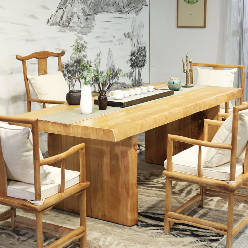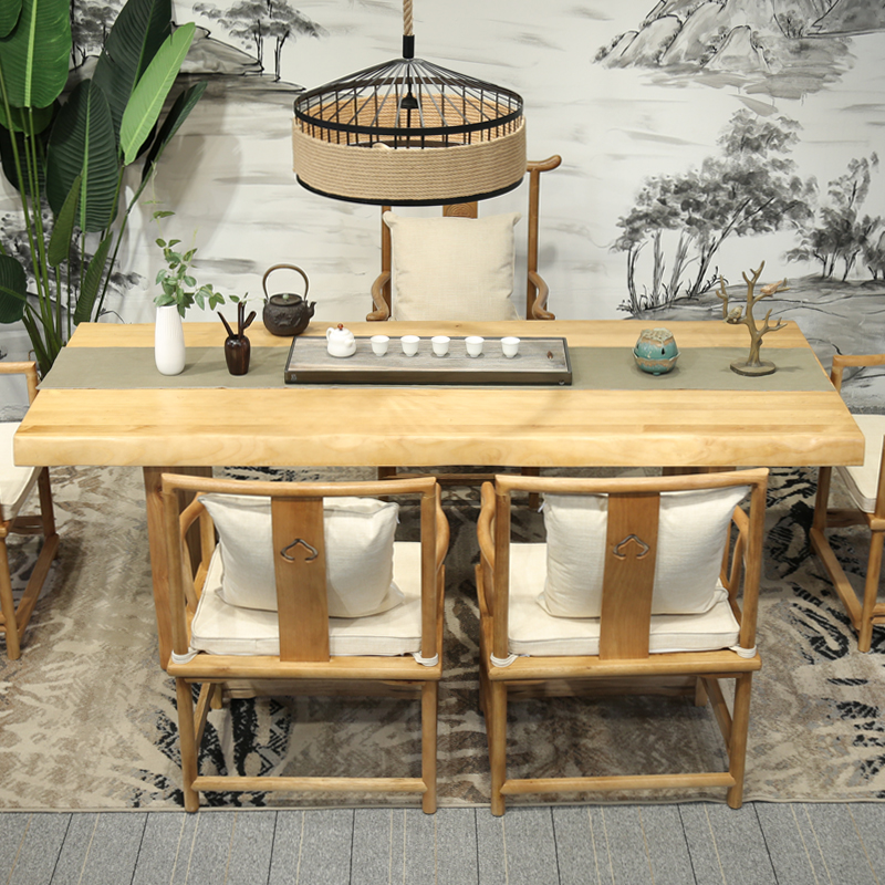 Simple modern solid wood Kung Fu Tea Table big class boss desk log board reception negotiation table tea table