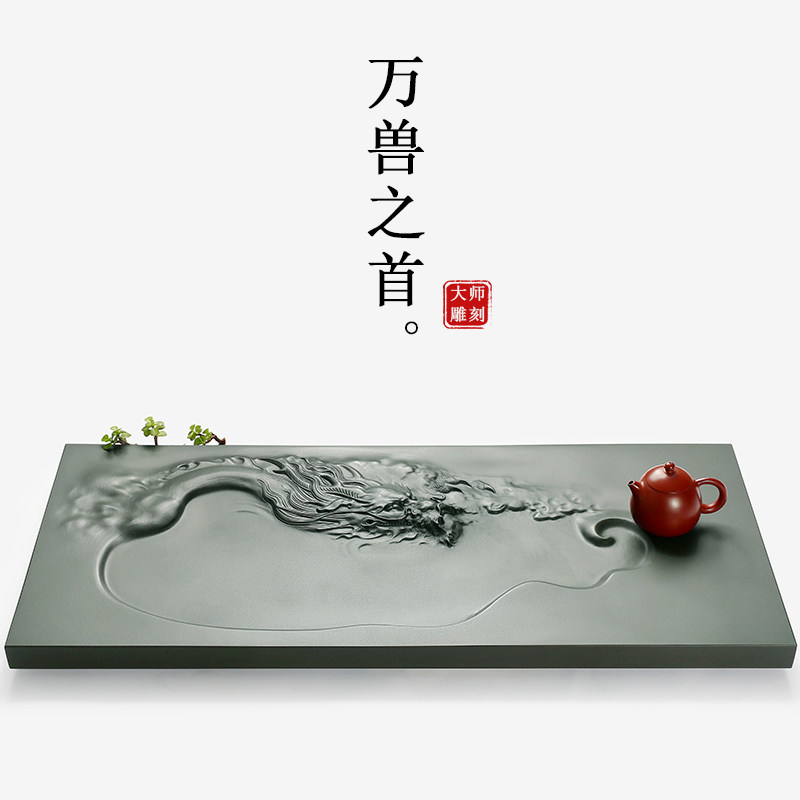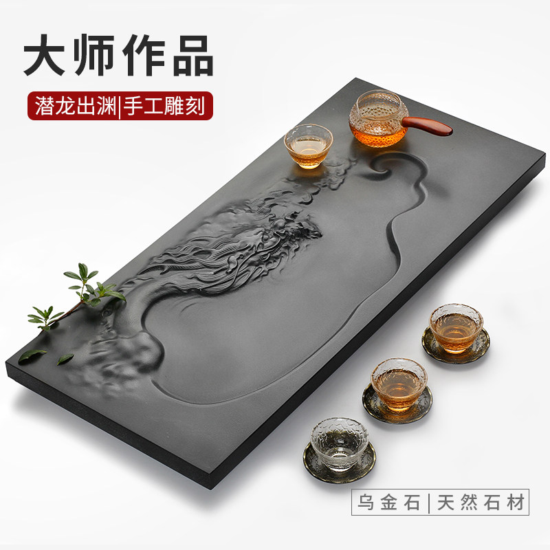 Three wake master works natural whole piece of Wujin Stone tea tray home simple Tea Sea black gold stone carving creative tea table