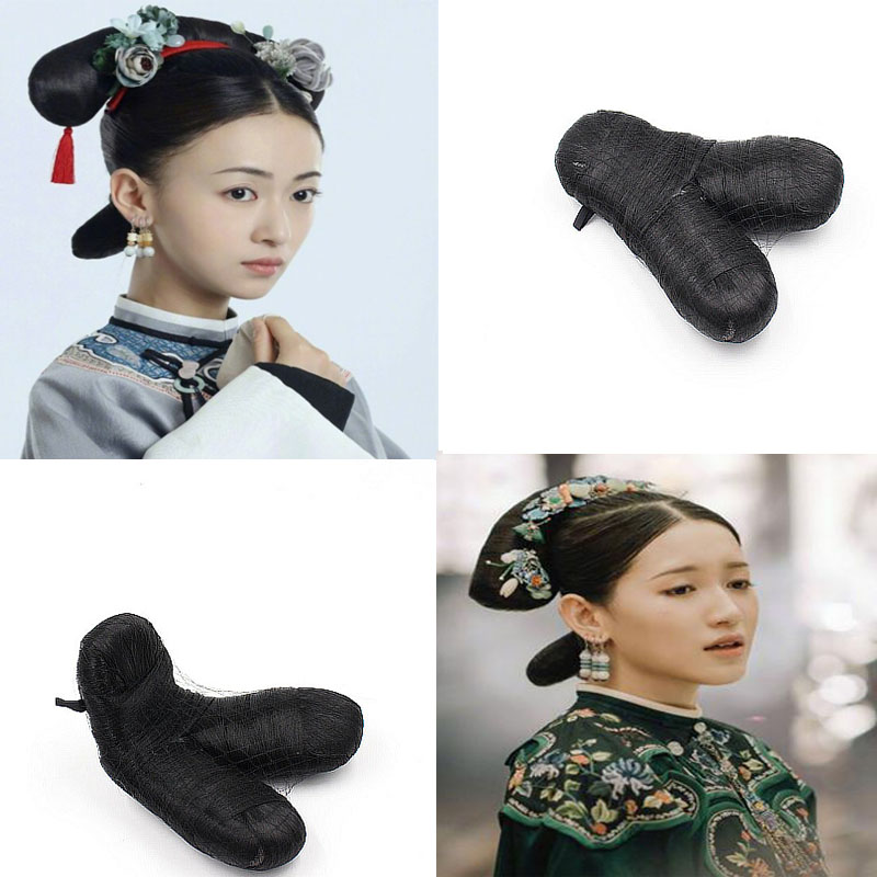Film and TV drama Yanxi attack slightly Wei Ying's same banner head wig dovetail hair and shadow building Qing Dynasty writing true wig head decoration-Taobao