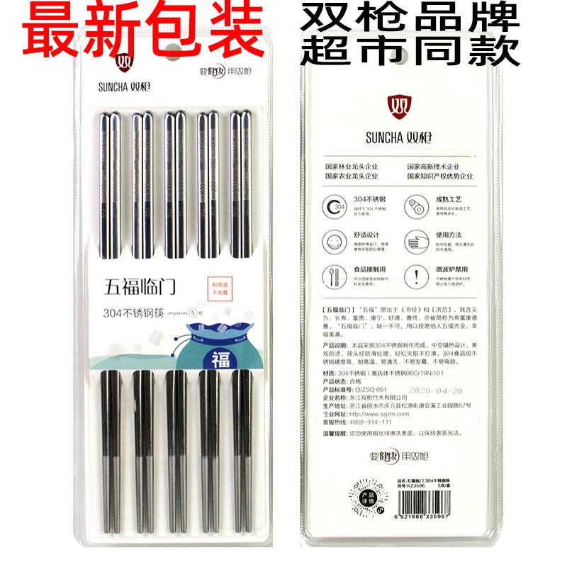 (buy 1) Twin gun 304 stainless steel chopsticks anti-slip anti-slip chopsticks hotel chopsticks household chopsticks KZ3596