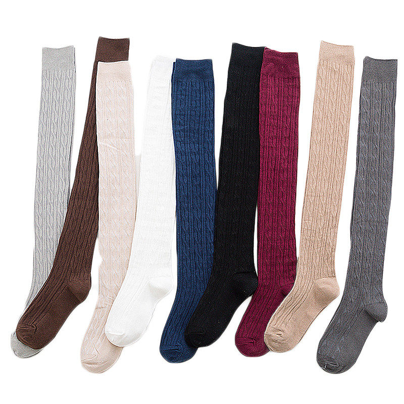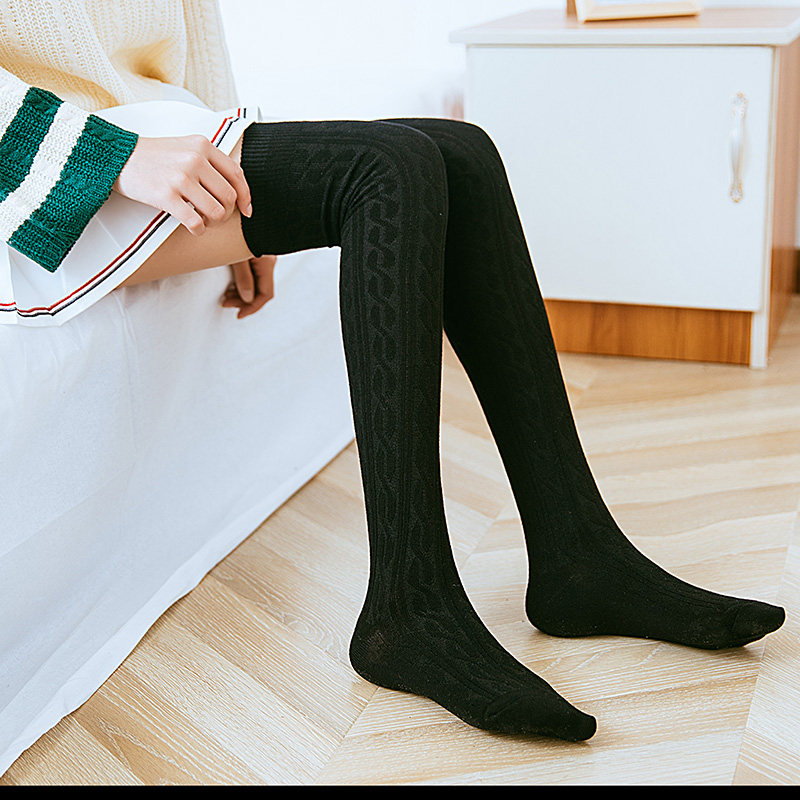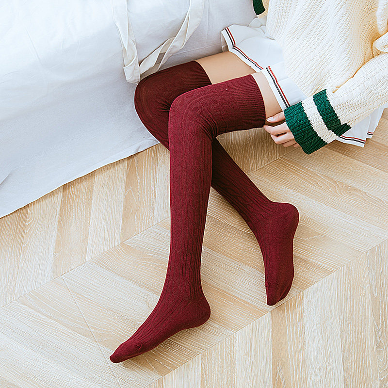 Autumn and winter over-the-knee socks Japanese cotton hemp mid-length socks college style thigh-high women's socks bubble socks