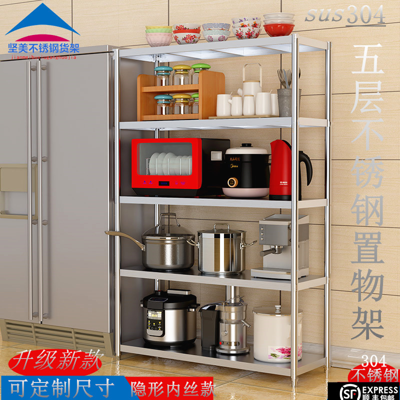 304 stainless steel kitchen rack floor-to-ceiling 5-layer thickened oven microwave oven storage shelf multi-layer storage shelf