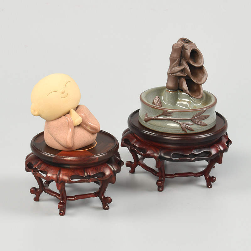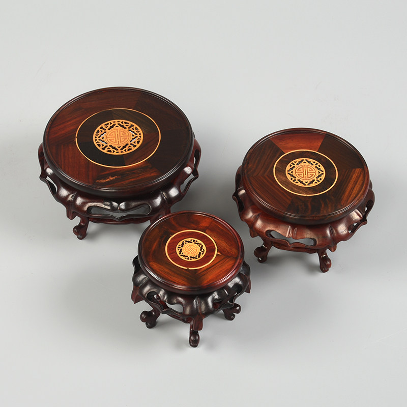 Red Wood Handicraft Opening Gift Xuanhua Rack Guan Wood Carving Chinese Style Swing Plant Flower Pots Buddha Head Living-room Home Wood Base