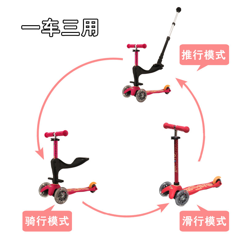 Migao Children Scooter 3 Wheels Adjustable Height Three-in-one Multifunction with Push Rod PLUS scooter