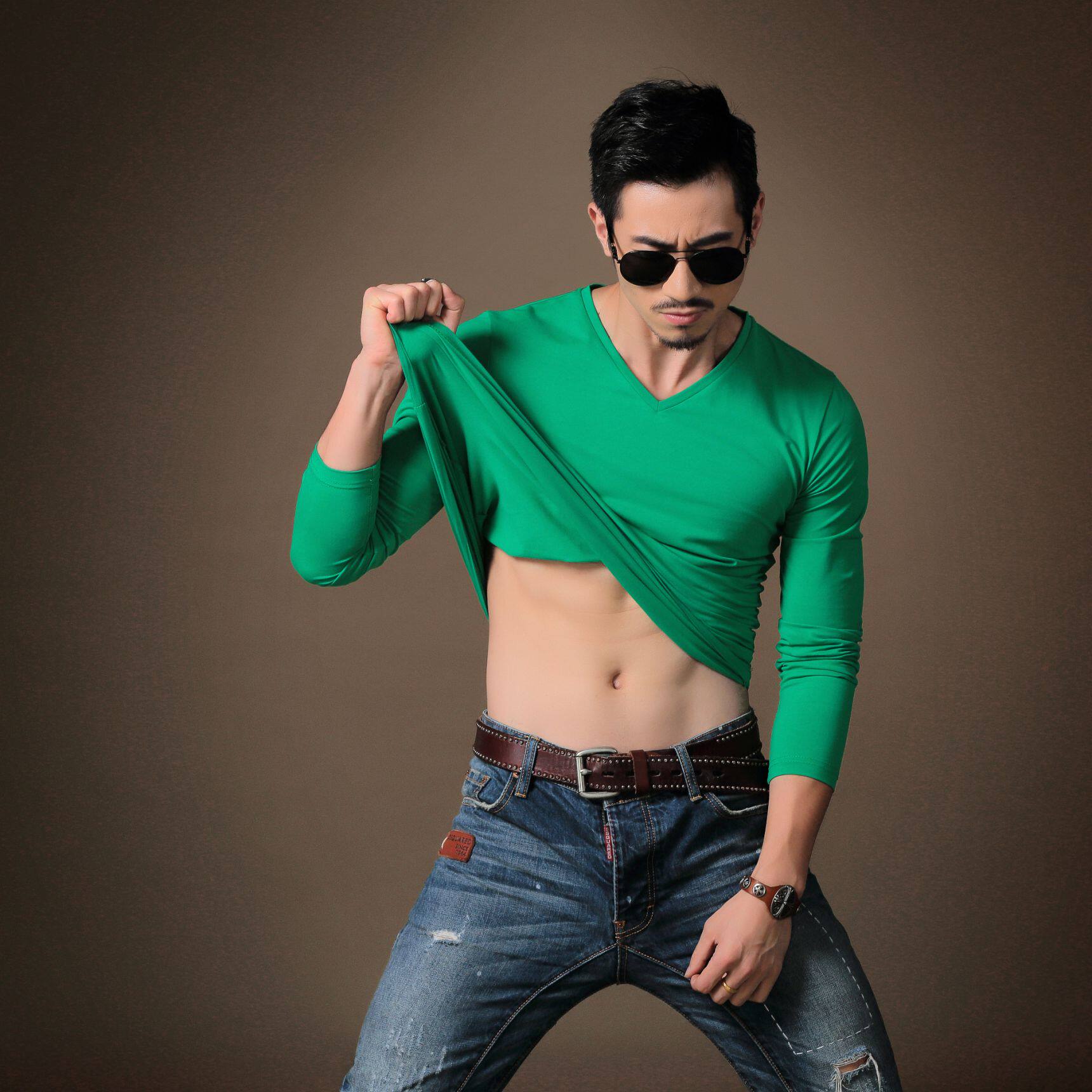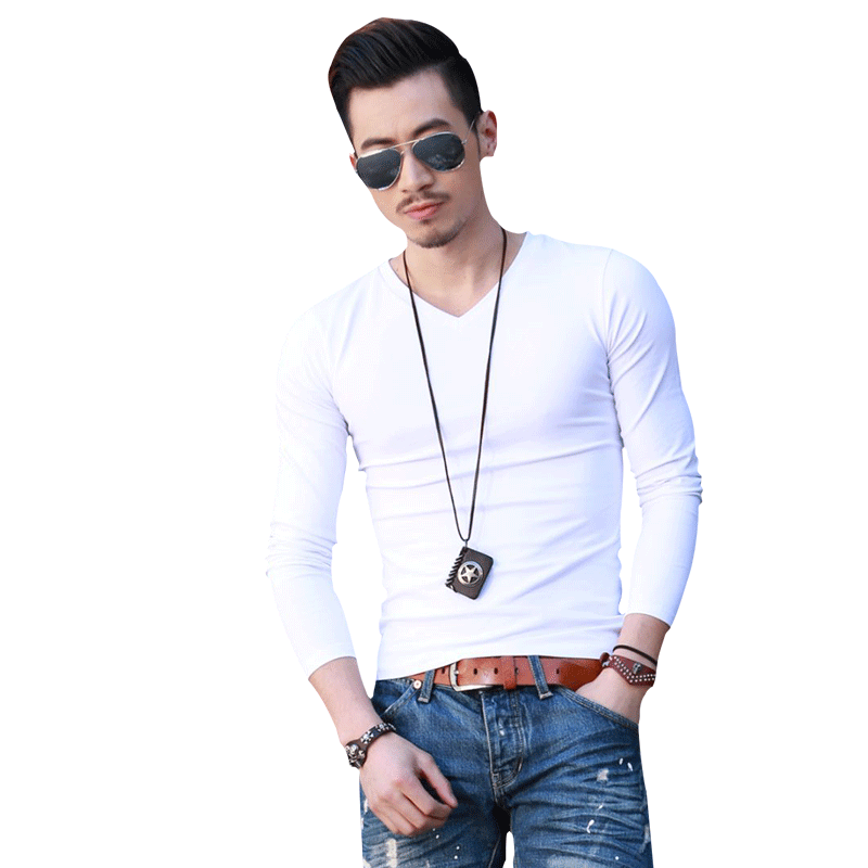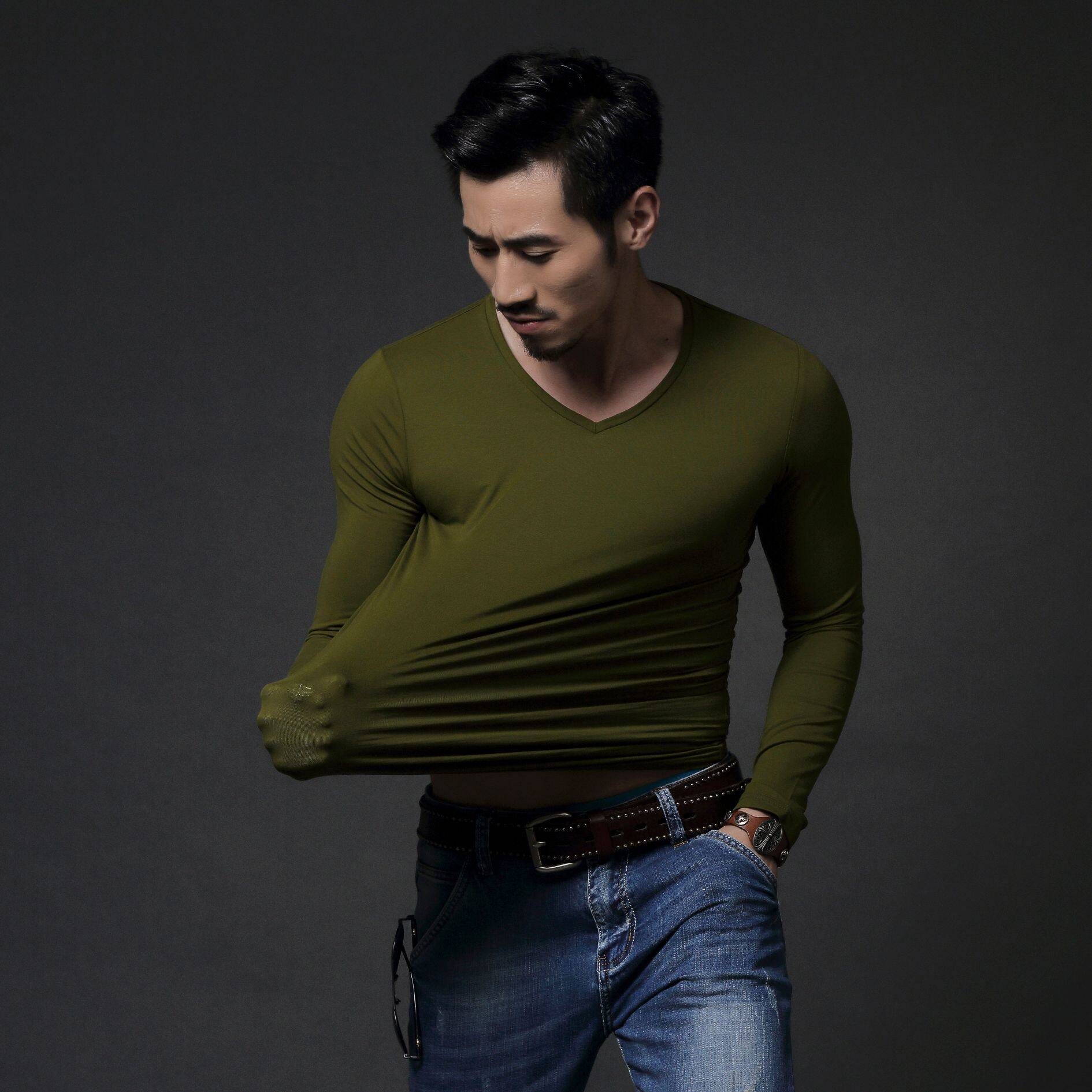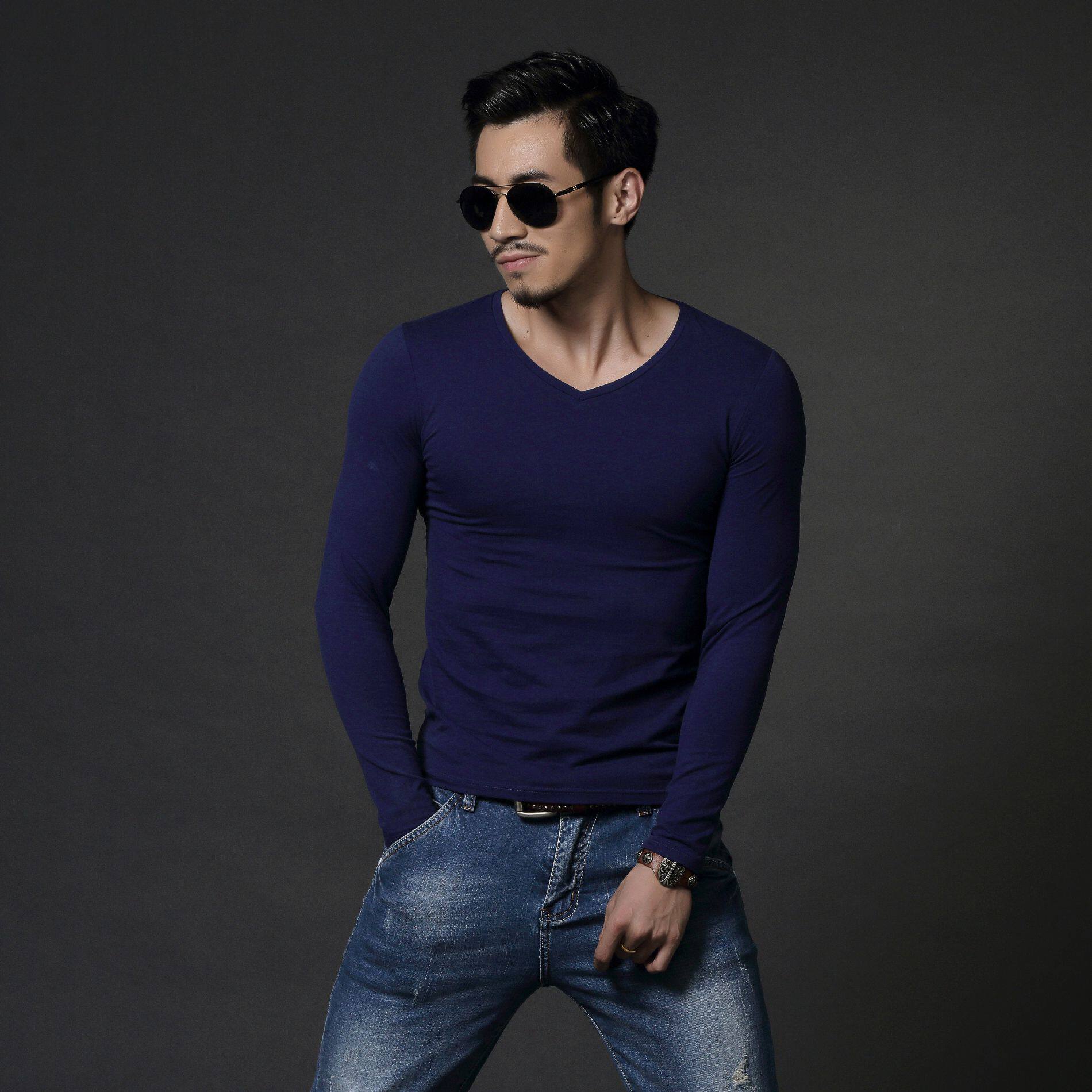 Men's long sleeves T-shirt 2020 Spring autumn new V collar elastic tight movement All cotton Nets for undershirt body blouses