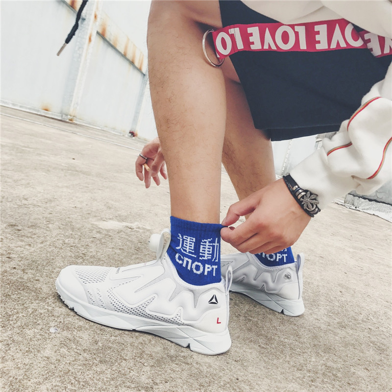 Creative text Men's high stockings leisure sports cotton socks youth short stockings Korean edition of treacherous skateboard stockings
