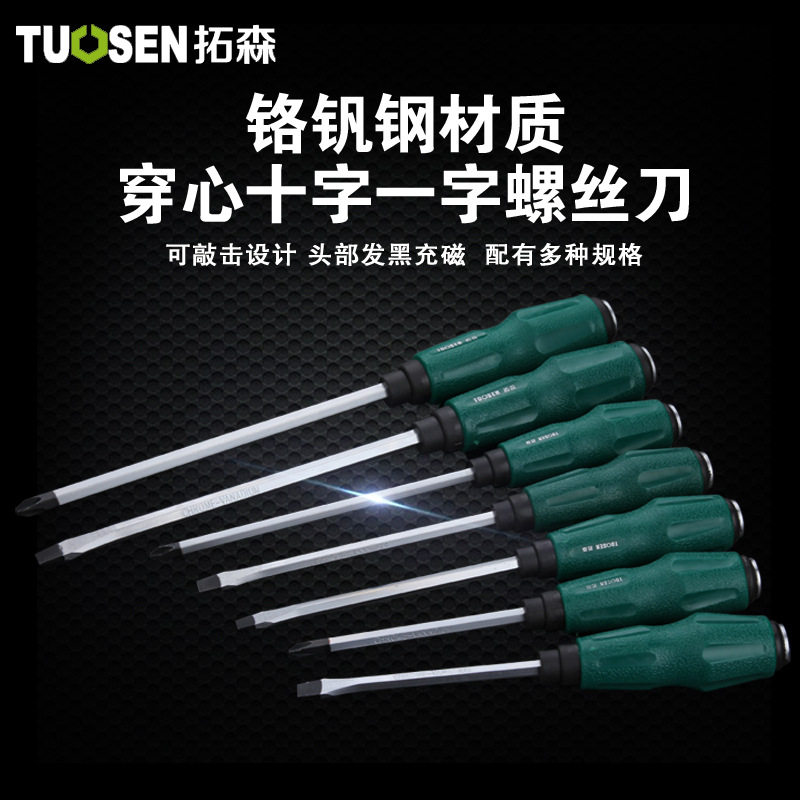 Tuosen chrome vanadium steel threading handle screwdriver word cross can be struck through the heart screwdriver Hand tool screwdriver