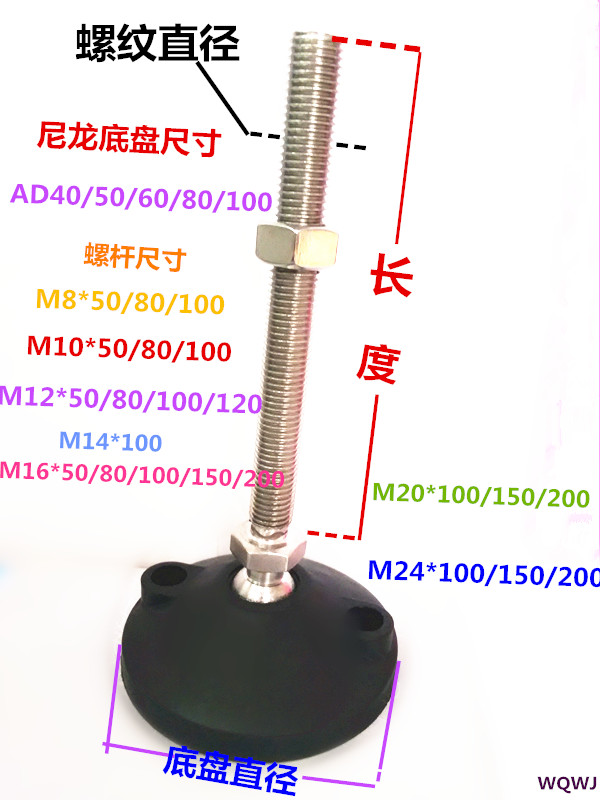 Carbon Steel Nickel-plated Nylon Universal Adjustment Foot foot bottom chassis Chassis AD100 studs M12M16M20M24
