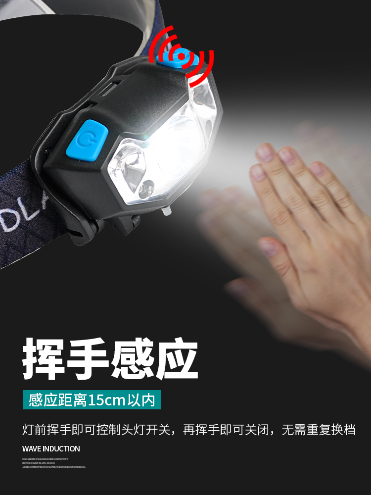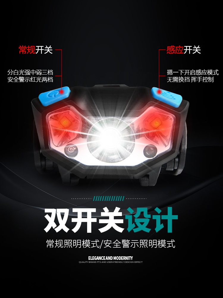 Induction headlight headlight wearing ultra-light small glare rechargeable ultra-bright night fishing light fishing waterproof outdoor headlight