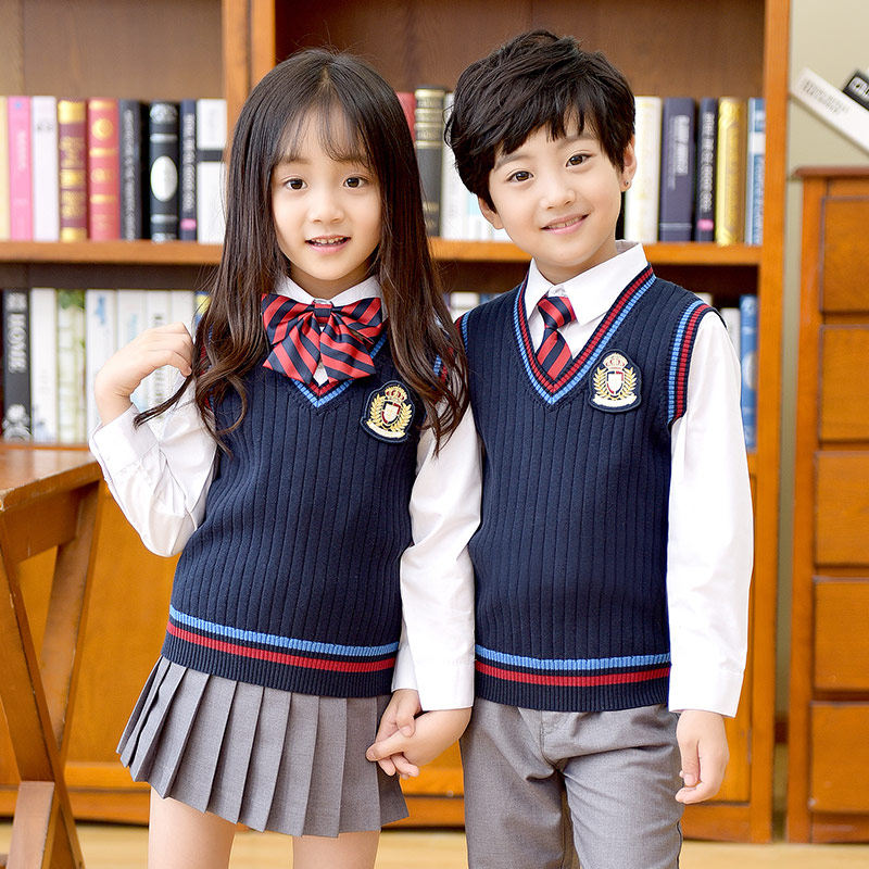 Kindergarten Garden Clothing Spring Autumn Season Yinglun College Wind School Uniforms for male and female children's clothing Vest Korean Edition Elementary School Students Class Suit Suit