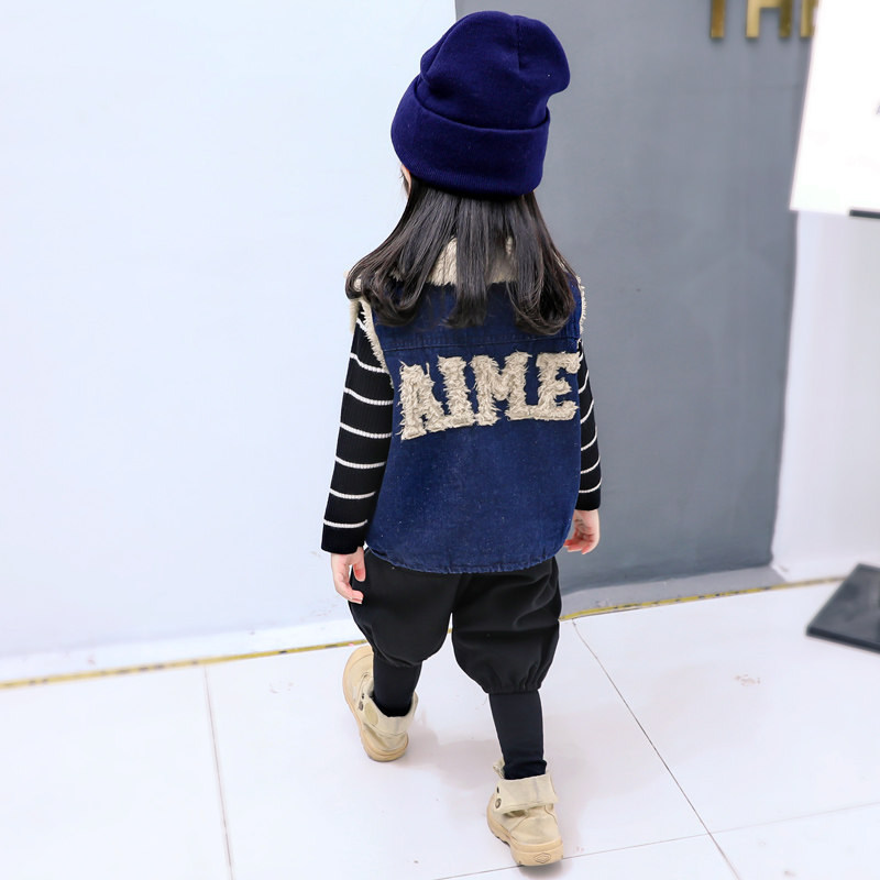 Baby autumn and winter clothes baby plus velvet denim vest children's denim vest boys and girls lamb velvet vest 1-6 years old