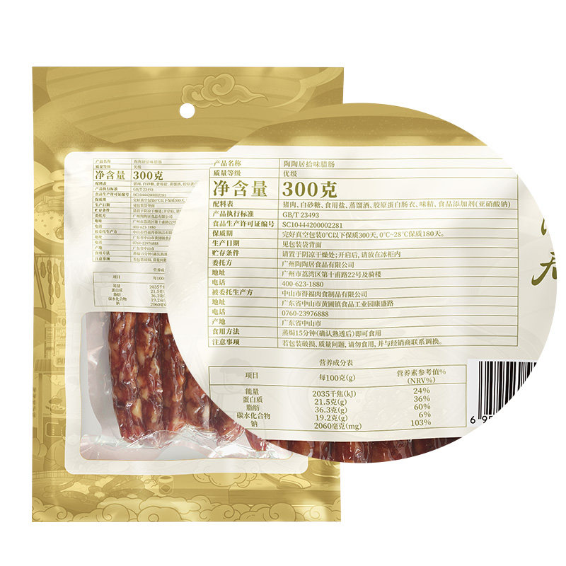 Tao Tao Residente 37 Wear sausage Guangzhou Pot Rice Wide Style Three Fat Seven Lean 300g Wine Family Sausage Latte specie