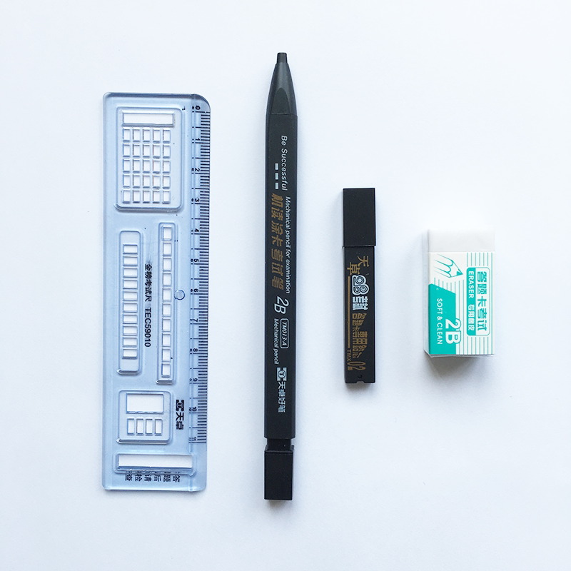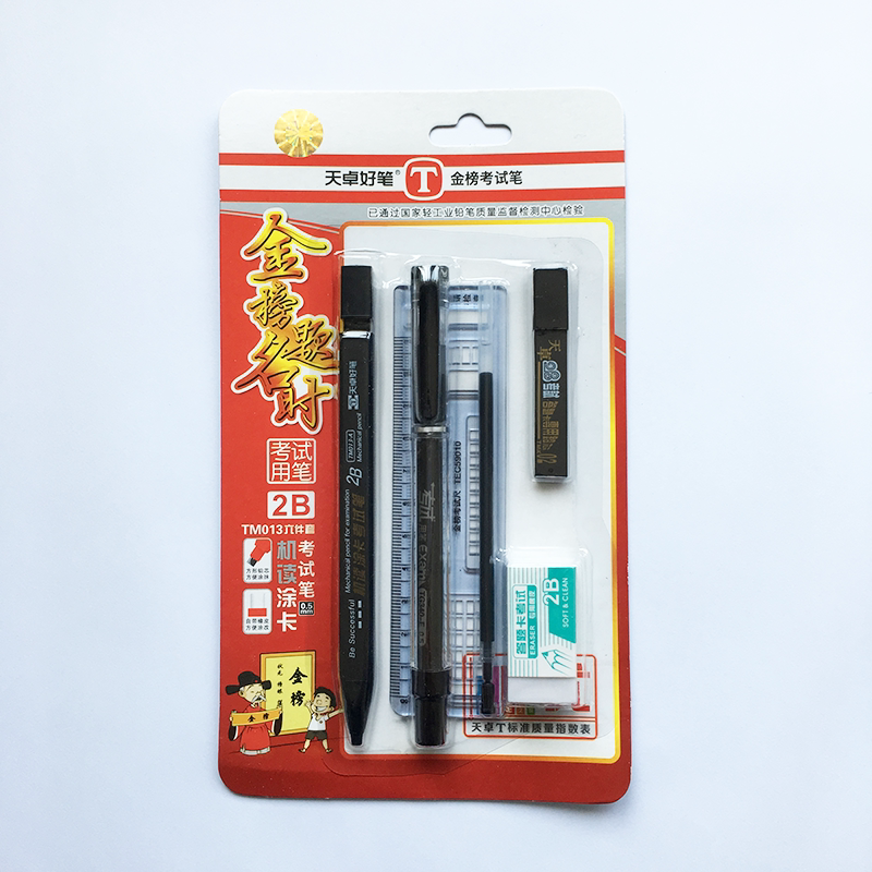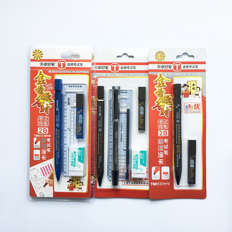 Tianzhuo good pen 2b coated card pen Machine reading test special TM013 set Mechanical pencil with rubber answer card lead core ruler square refill computer pen full set of gold list questions