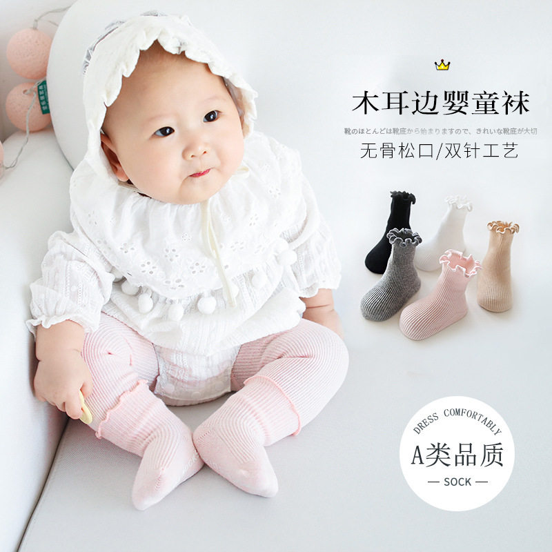 Autumn and winter wooden ear baby socks boneless dispensing non-slip baby newborn socks 0-1 years old girls cotton socks