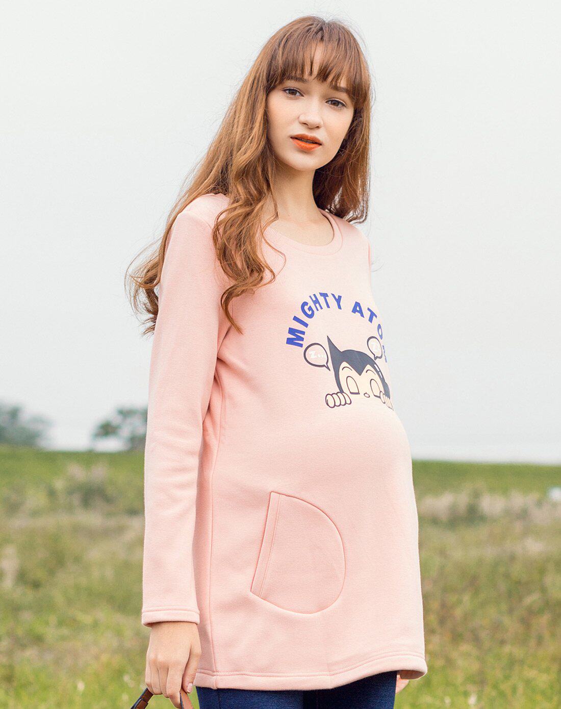 Pregnancy color pregnant woman winter dress round collar blouses with velvet long sleeve cartoon ATong wood thickened T-shirt progesterwoman for autumn and winter