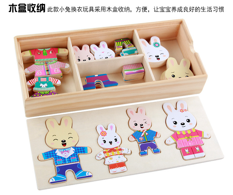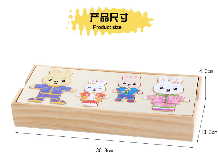 Kindergarten small class Early parish corner play teaching aids Cartoon rabbit change clothes and dress Cognitive matching puzzle puzzle board