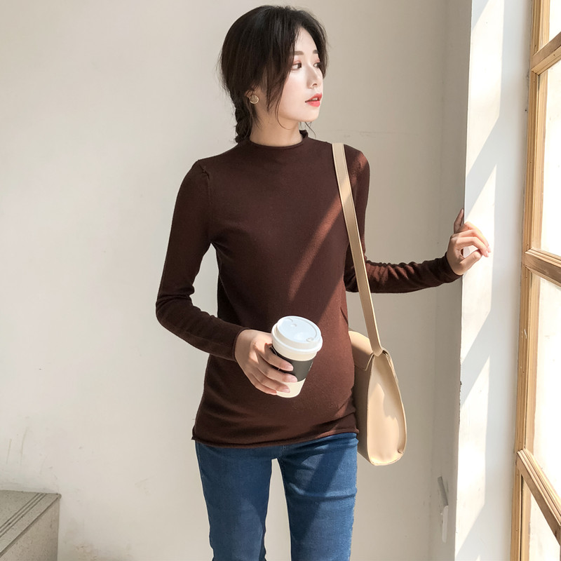 Maternity clothes spring and autumn tops Fashion all-in-one base shirt Simple solid color stretch slim slim pregnant women knitwear