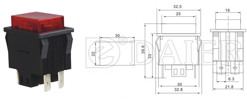 KK KD8 baler jog reset button ship switch 15A 25*32MM rectangular red and green 4 feet