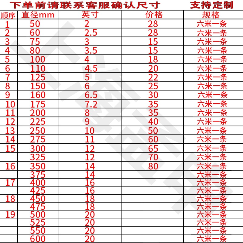 Inner diameter Φ50mm*6m Root inner diameter Φ60mm*6m Root inner diameter Φ75mm*6m Root inner diameter Φ80mm*6m Root inner diameter Φ100mm*6m