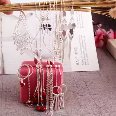 Sterling silver 990 foot silver earrings female ear needle long version of temperament Japanese and Korean ear refining all ear jewelry love personality sense silver jewelry