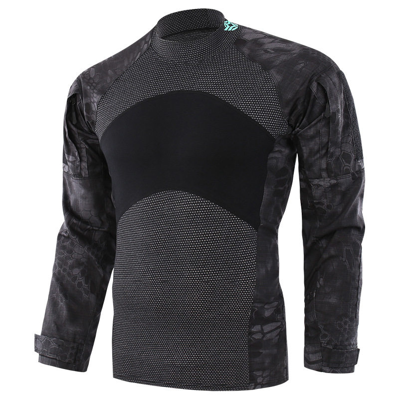 Cross border ESDY three generations of frog clothes new cotton camouflawy military training clothes round collar tight mesh long sleeve men's combat clothes