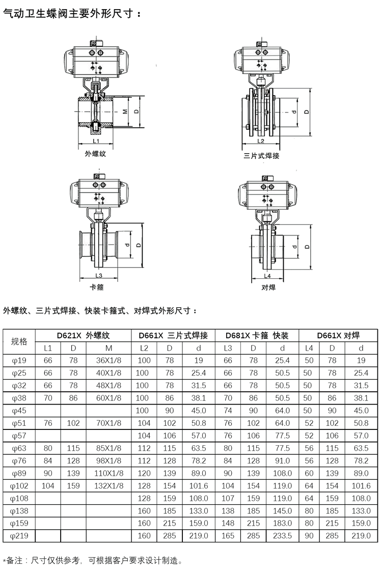 Pneumatic sanitary level butterfly stainless steel quick-fit type 9 1 D681X 25 32 38 45 51 51 57 Kofi