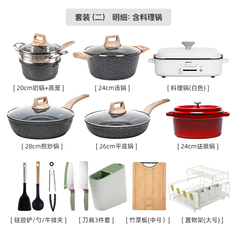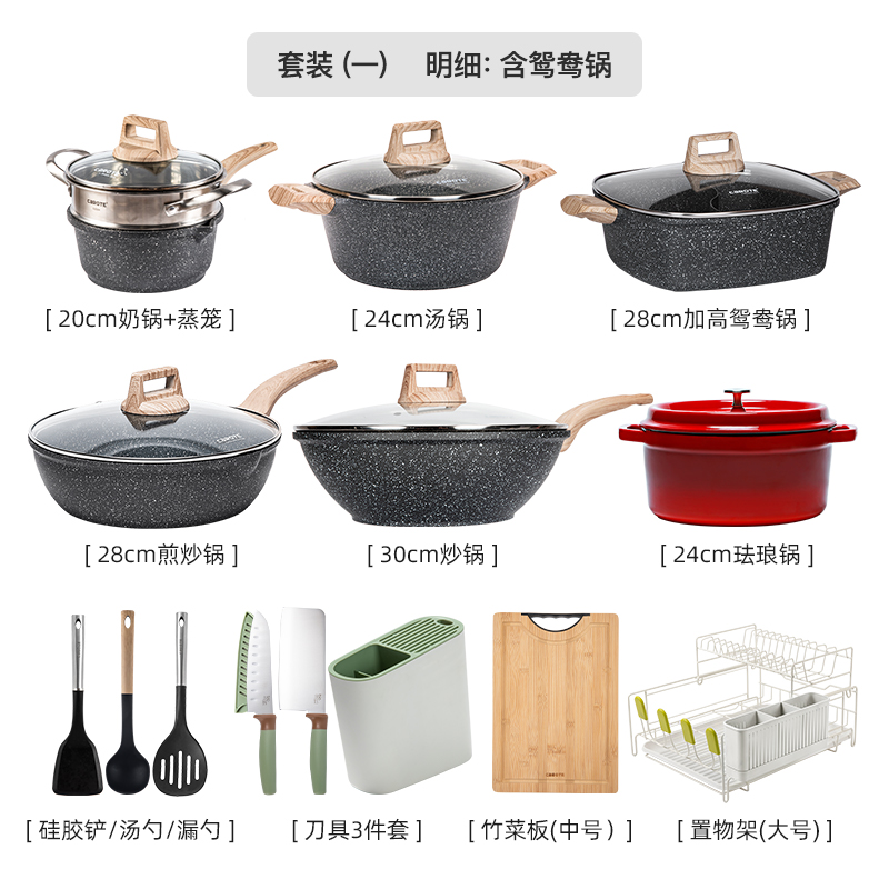 Carot Mai Fan Stone Non Stick Pot Wok Soup Pot Milk Pot Pan Pan Enamel Pot Multi Piece Set Pot Utensils Household Set