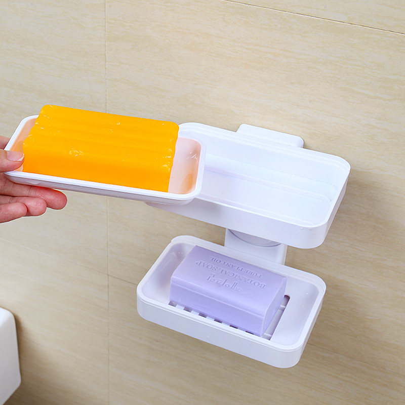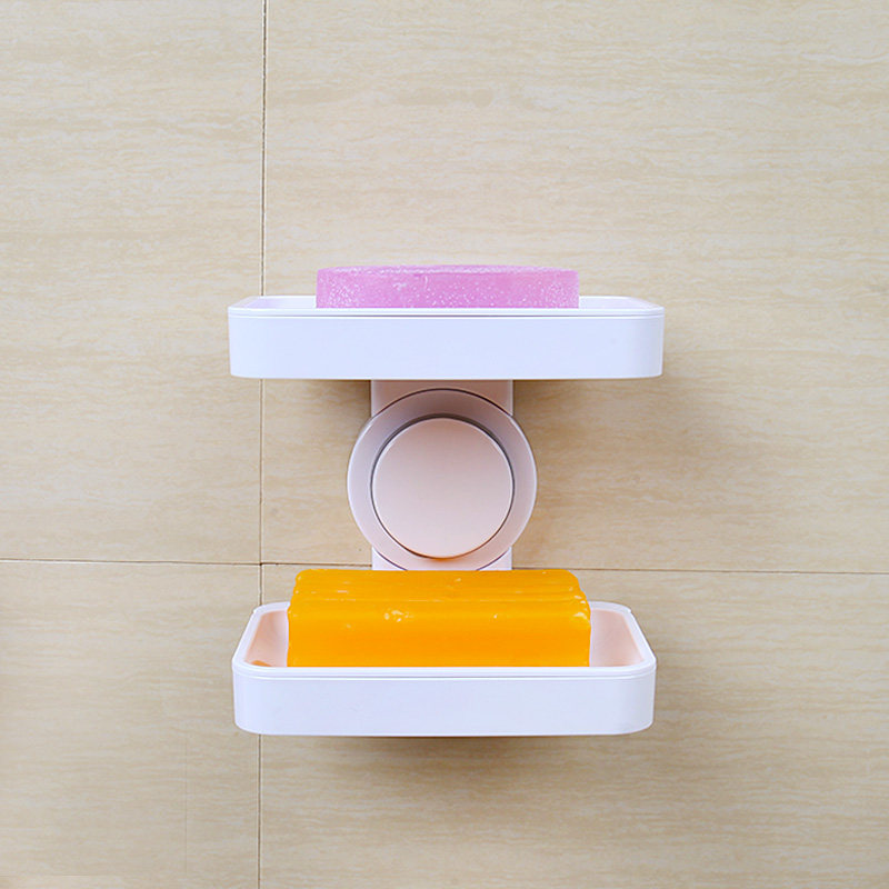 Suction cup fat box Powder room drain double layer creative incense box Home free hole wall-mounted bathroom shelf