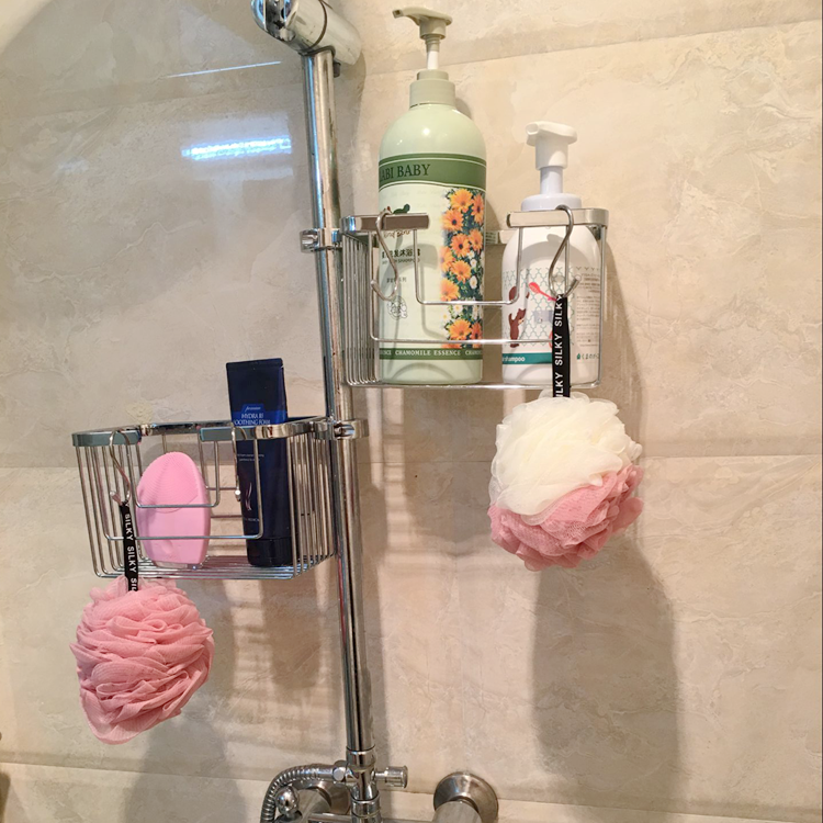 Bathroom bathroom shower rack 304 stainless steel basket net blue free punch shower room shower gel bracket