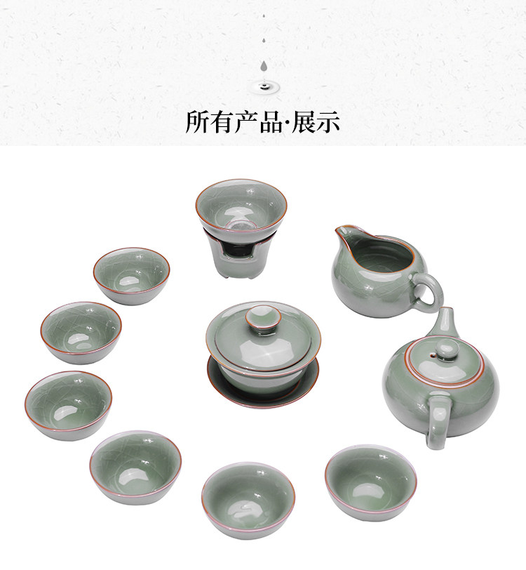Longquan Celadon ice crack glaze Gongfu tea with tea maker with lid Teacup Hand grab pot Household three-cai cover bowl new product
