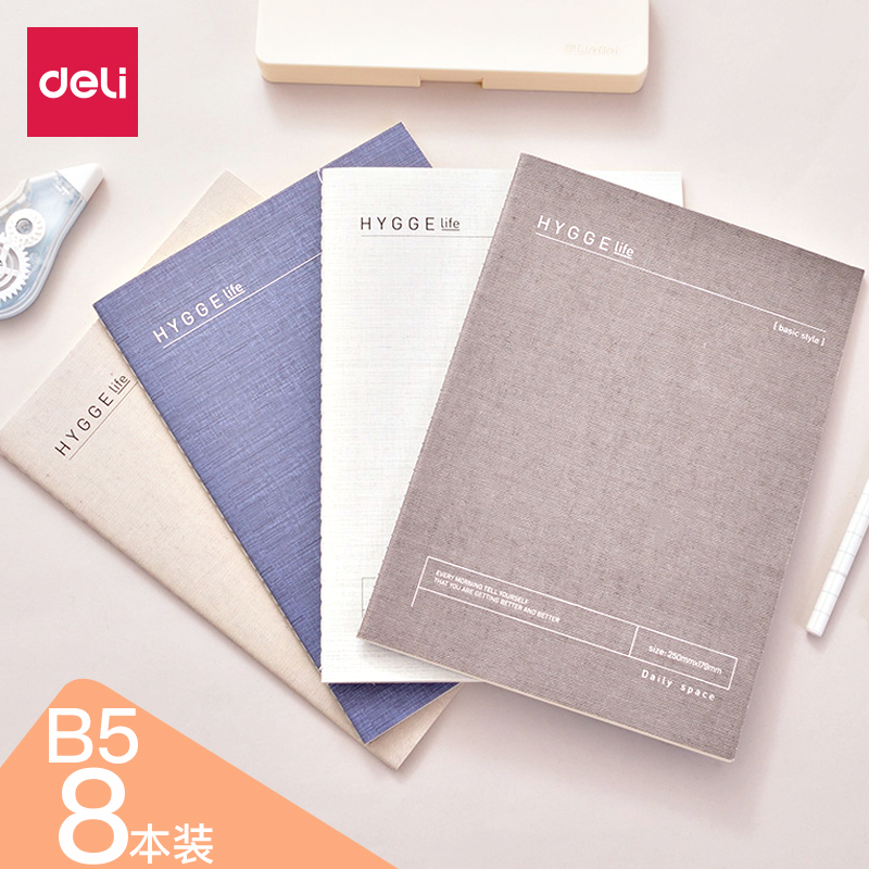 Deli Notebook Stationery Large Book Diary Student Soft Face Copy B5 Notepad Simple Business Office With College Student Soft Codex Handbook Exercise Book Thickened 8 Books