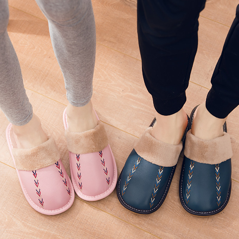 Winter men and women home indoor leather warm cotton slippers home floor non-slip soft bottom wool slippers home couple