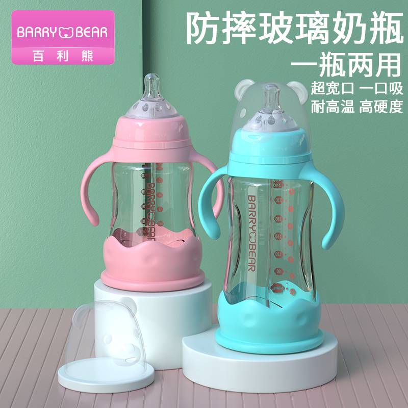 Baili Bear big baby bottle High temperature glass anti-fall anti-flatulence anti-choking wide mouth straw water cup Newborn baby