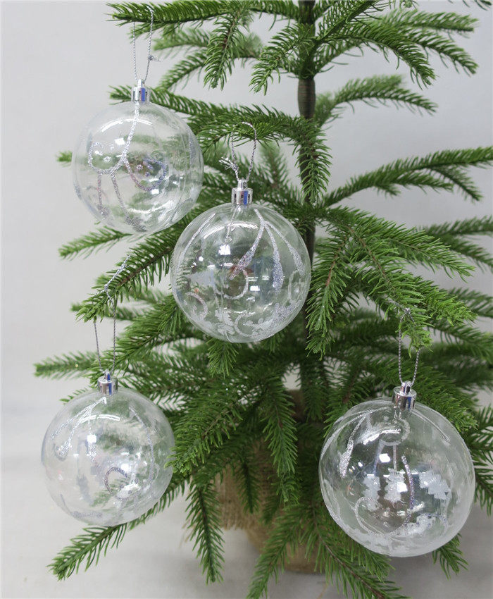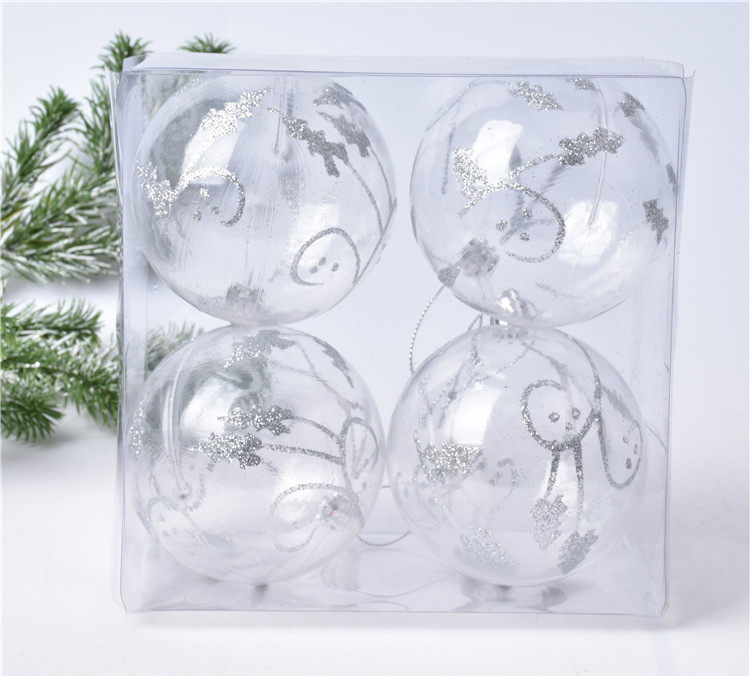 Christmas window arrangement ball Christmas tree decoration pendant 8CM transparent electroplating painted ball pendant plastic ball 4 packs