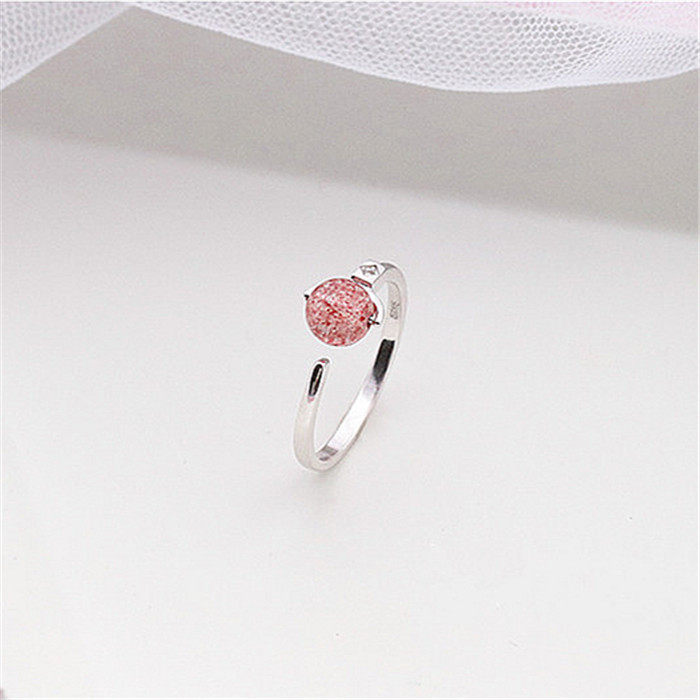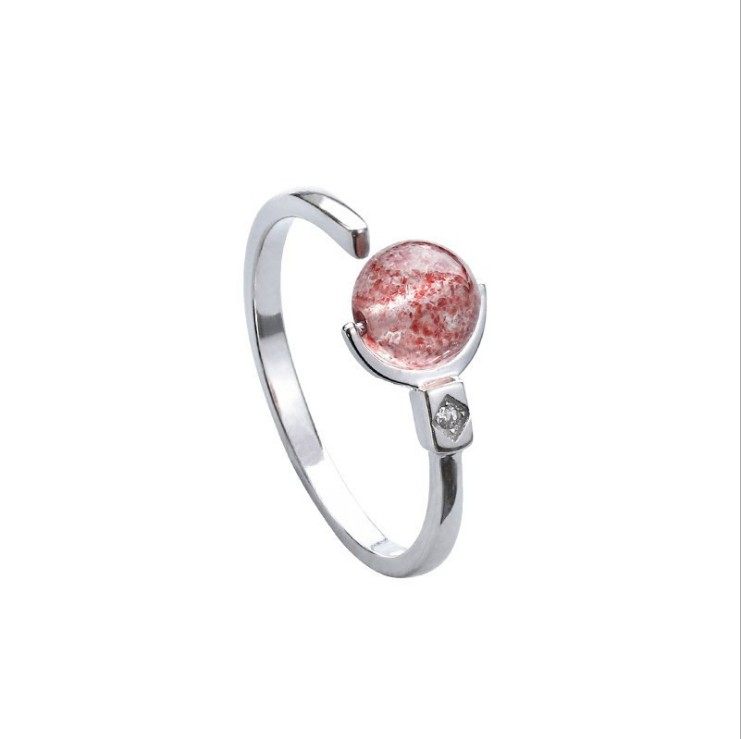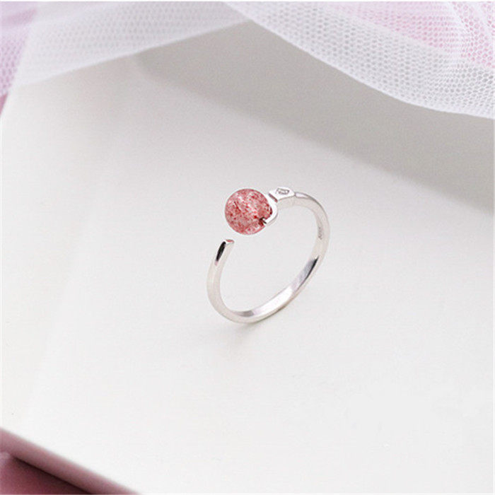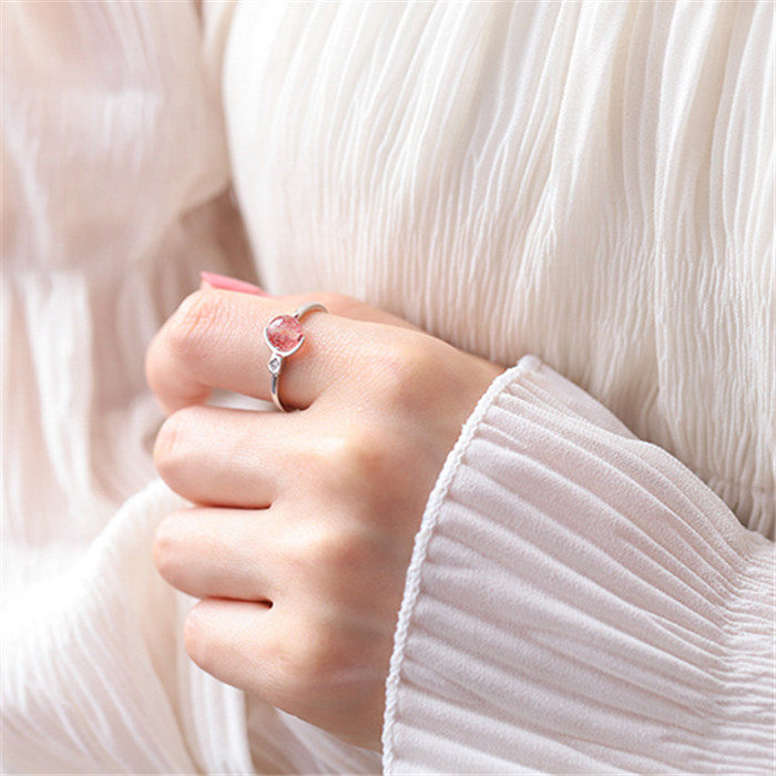 925 Sterling Silver Ring Female Strawberry Crystal Peach Blossom Transfer Red Japanese and Korean Personality Student Simple and Fresh Mori Powder