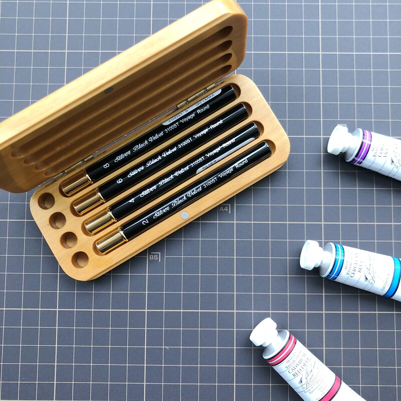 Davi Atelier rosewood travel watercolor brush box solid wood can store black velvet and litbrush