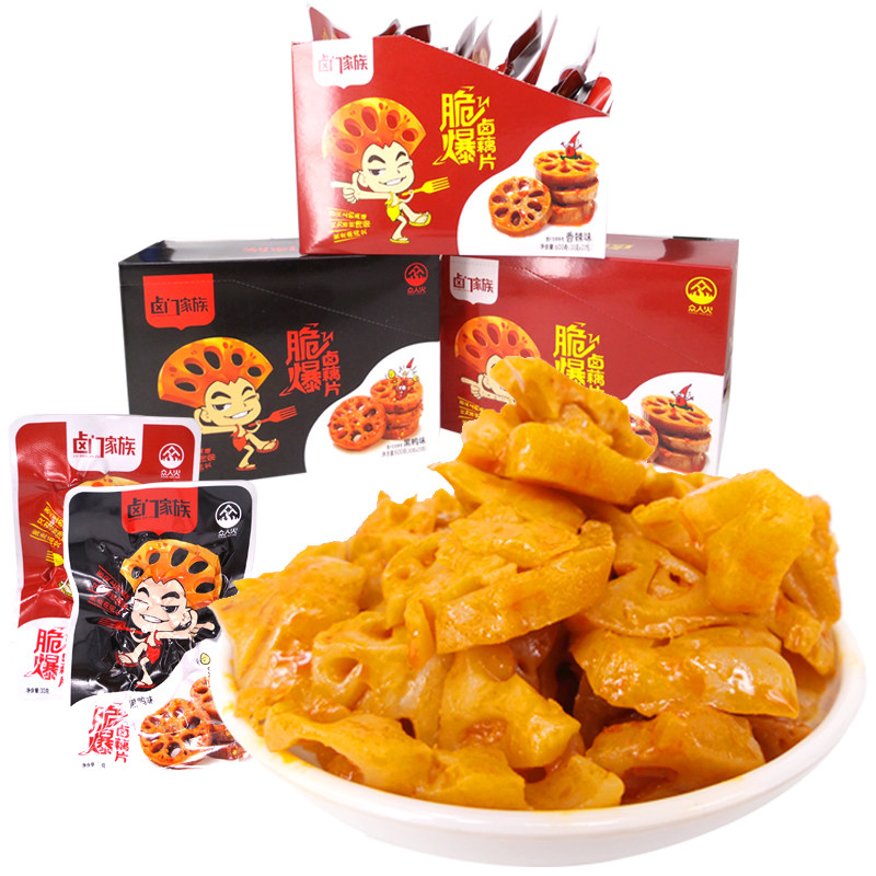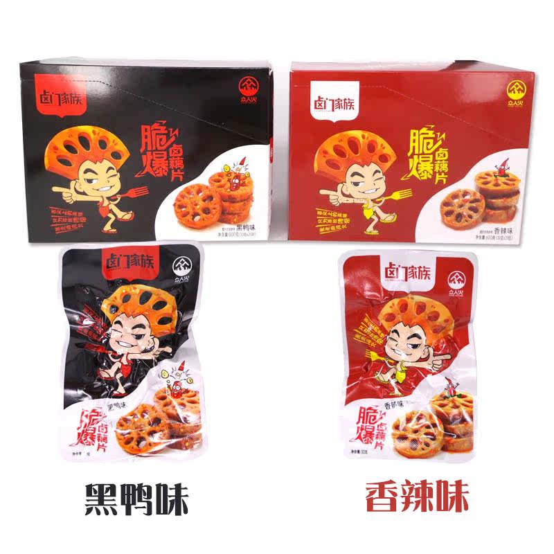 Halogen Door Family Crisp halogen root slice Spicy Black Duck Taste Sauce Halien Lotus Root Vegetables Dry Snacks 600g Whole Boxes 20 Pack