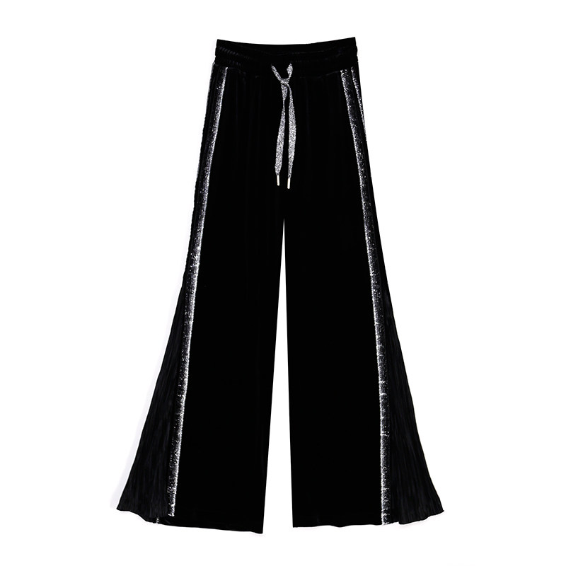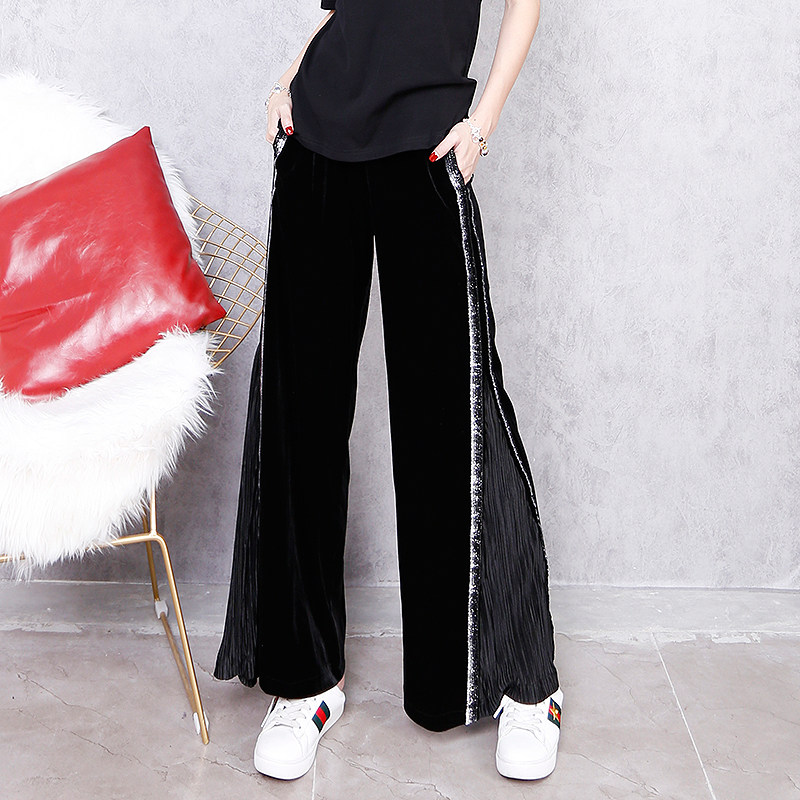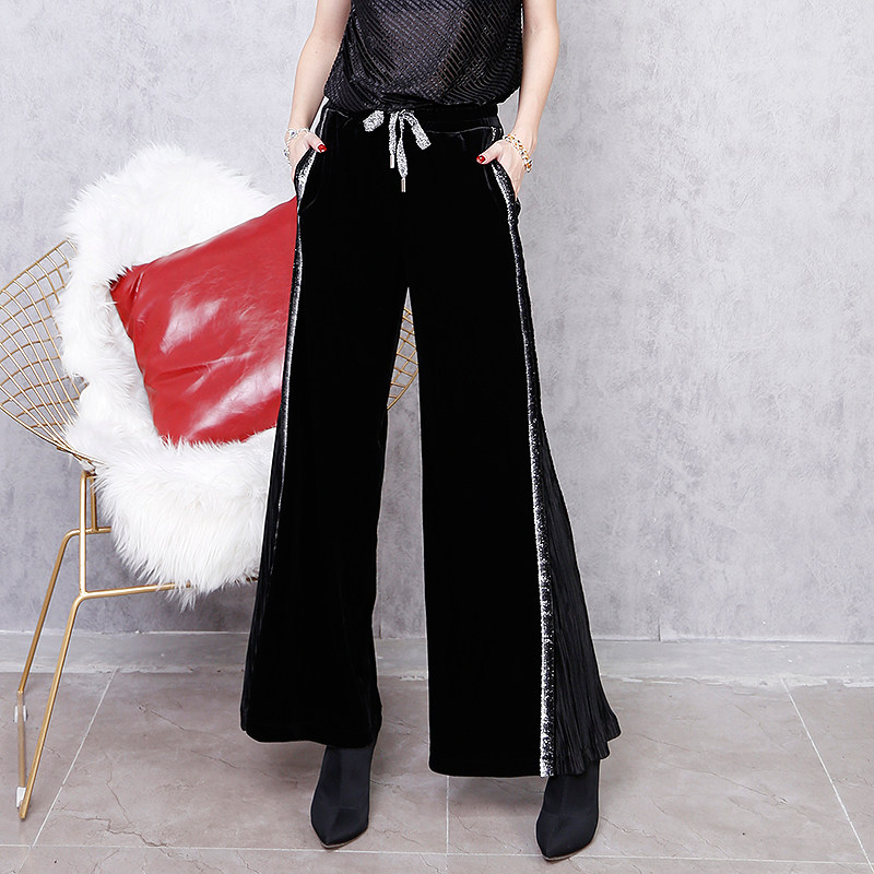 2020 spring and autumn new women's Korean version wide-leg pants high waist elastic waist splicing loose striped chic trendy slim trousers