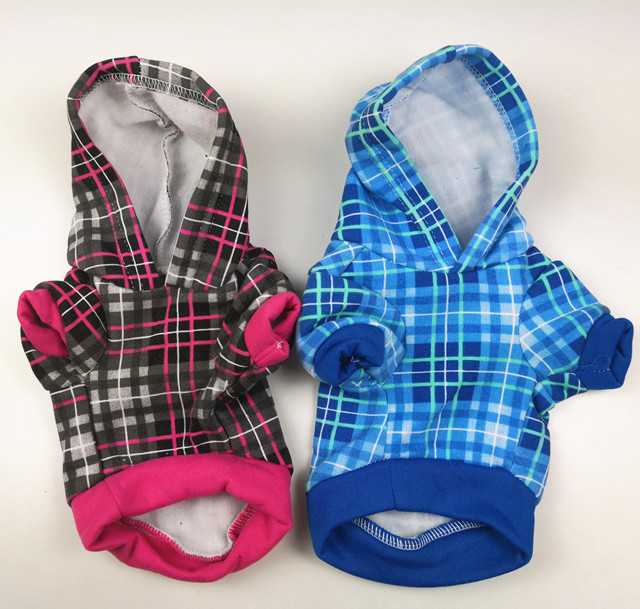 Pet dog clothes plaid hooded sweater dog clothes autumn and winter fleece puppies Chihuahua Teddy
