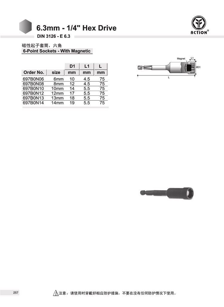 Perak Horse sleeves 1 4 * 75mm Magnetic hexagonal male starter batch head sleeves 697B0N06 ~ 697B0N14