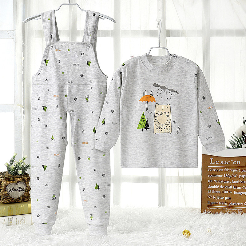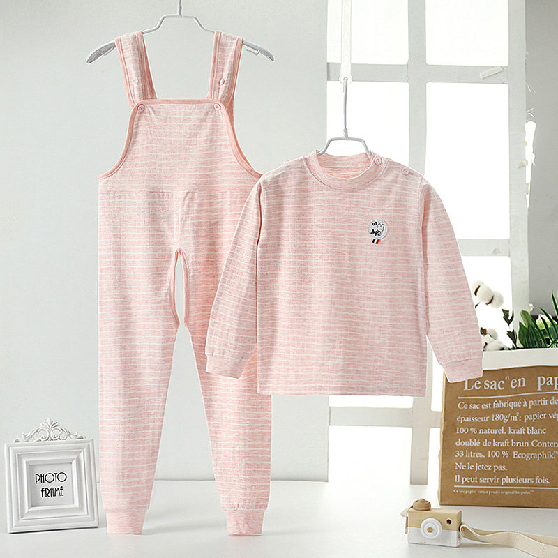 Children's colored cotton underwear bib suit open crotch boys and girls pure cotton baby long johns winter middle and big children