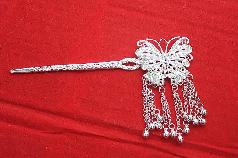 A Ying Miao Art classical costume Plate hair tassel hair Cactus hairpin Miao silver hairpin hair Cactus headdress hair ornament
