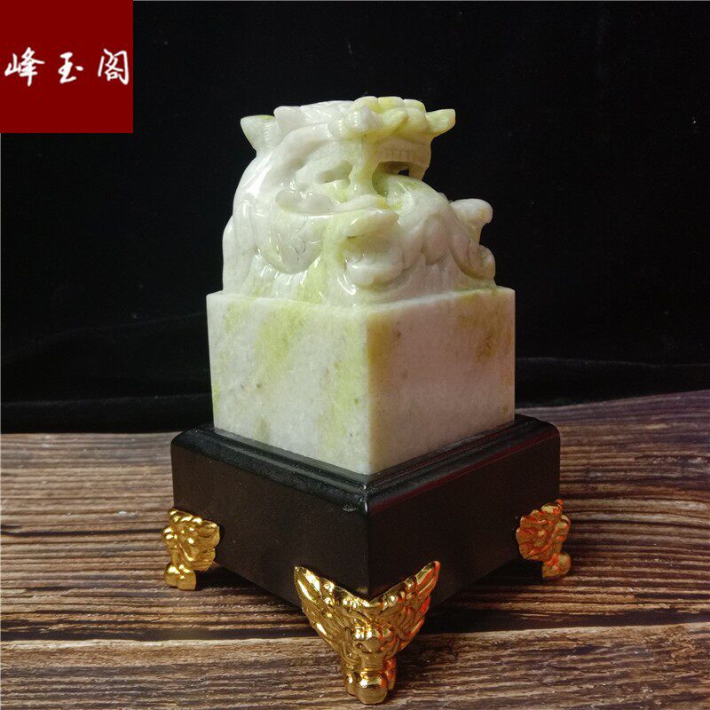 Natural Jade Blue Fields Jade Disc Dragon Seal Dragon Seal Bottom Lettering Business Gift Feng Shui Swing Accessories Handmade Engraving