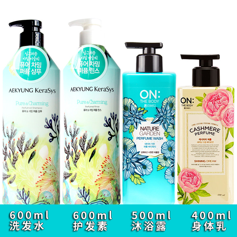 South Korea imported perfume shampoo shower gel washing care bath three-piece set lasting fragrance ladies